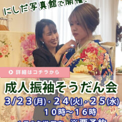 成人式のお着物どうしよう???の不安が一気に解決する!にしだ写真館で開催…